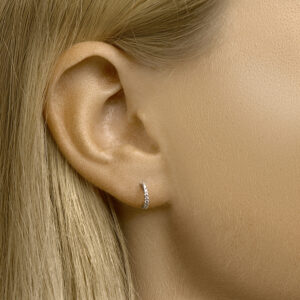 Gerhodineerd 925 zilveren stekeroorringen uitgevoerd met een schitterende zirkonia rij. De oorringen hebben een afmeting van 9.3×1.4mm.