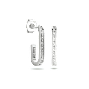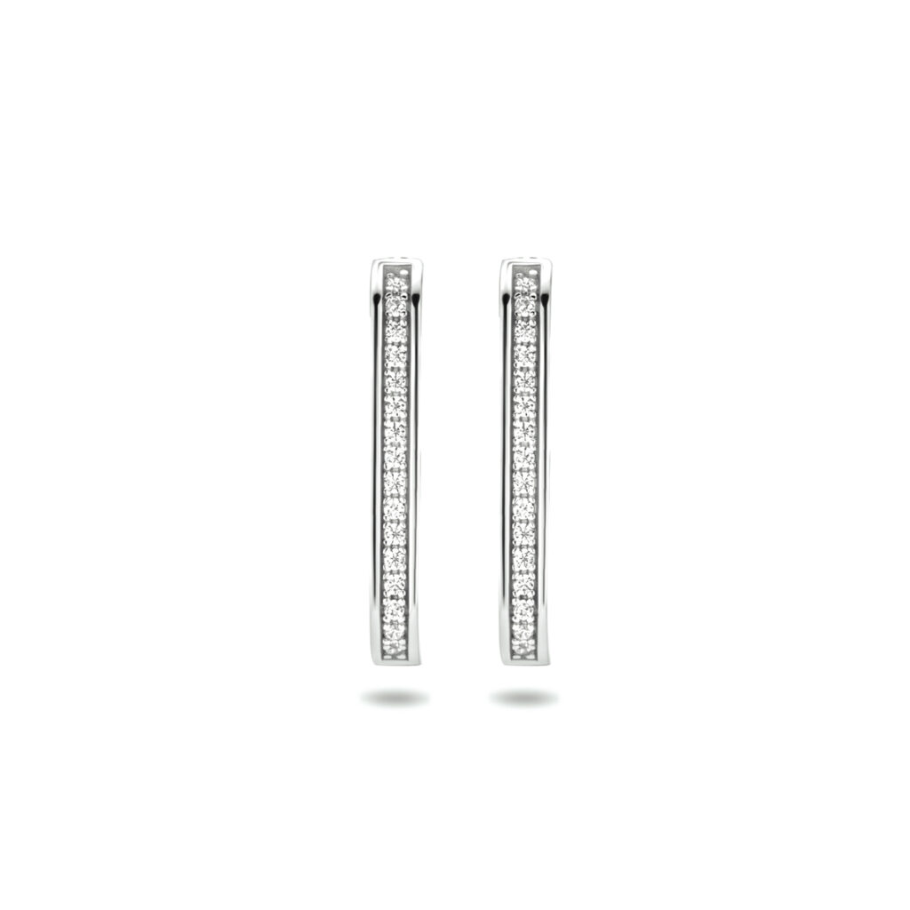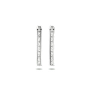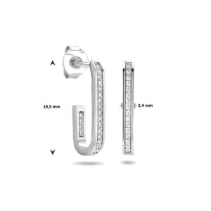 Gerhodineerd 925 zilveren stekeroorringen uitgevoerd met een schitterende zirkonia rij. De oorstekers hebben een afmeting van 19.5×2.4mm.