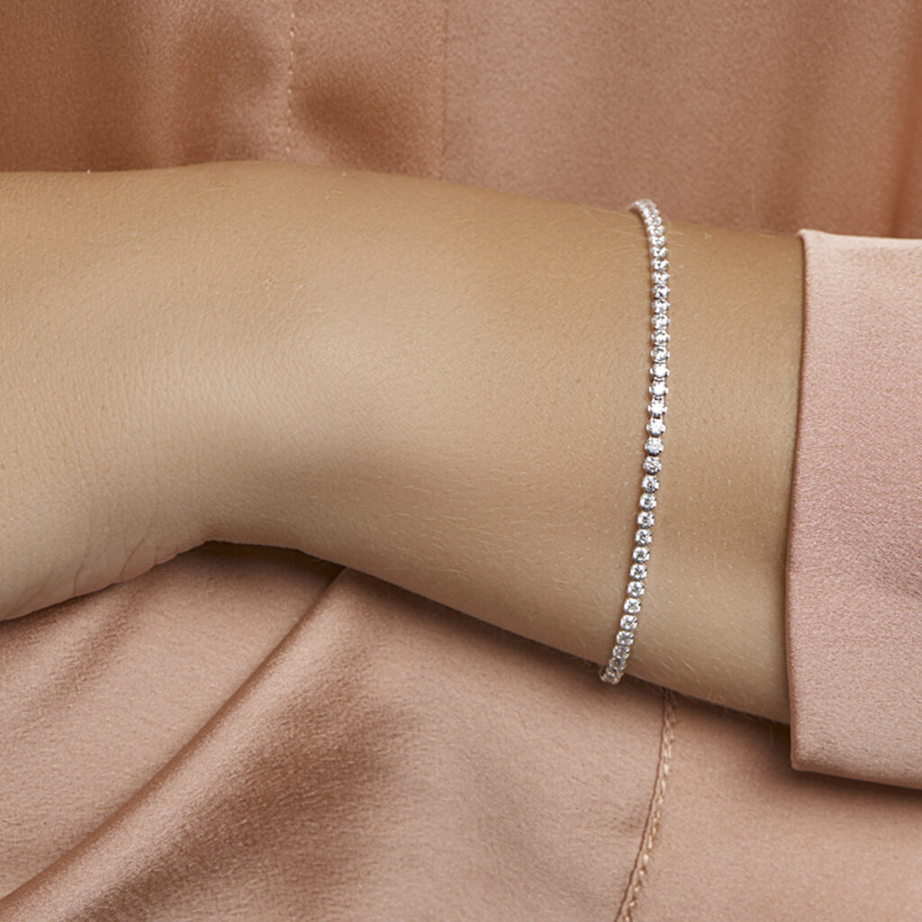 Gerhodineerd zilveren tennisarmband met zirkonia.