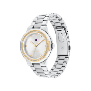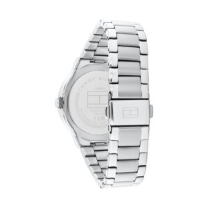 Dit specifieke horloge van Tommy Hilfiger uit de Piper serie met artikelnr: TH1782723 is een luxe sportief dameshorloge die niet in je collectie mag ontbreken. Het stalen dameshorloge heeft een ronde zilverkleurige kast met een bezel vol kristallen en een ziverkleurige sunray wijzerplaat. De uren worden tevens weergegeven met kristallen. De zilverkleurige schakelband is op lengte verstelbaar en heeft een vouwsluiting. Het horloge heeft een mineraalglas, een doorsnee van 36mm en is 3ATM.