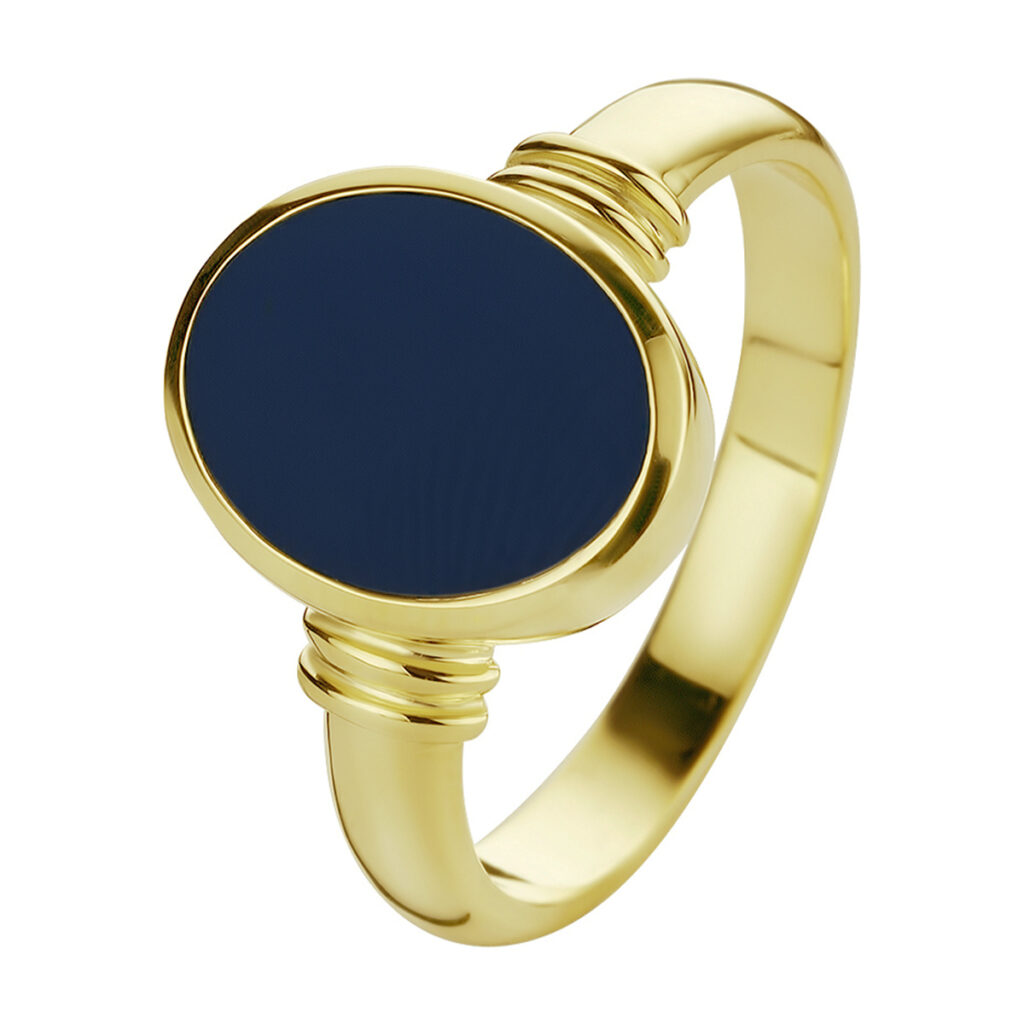Stijlvolle geelgouden zegelring uitgevoerd met een lagensteen. Glam up your outfit! Combineer deze ring met bijpassende sieraden uit onze collectie. De ring geeft je look direct een chique uitstraling.