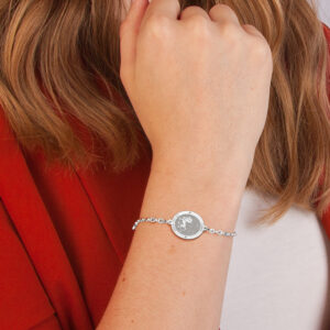 Deze armband is afkomstig van het merk Names4ever en kan dus naar wens voorzien worden van een naam. De armband is volledig gemaakt van 925 sterling zilver, de allerbeste kwaliteit zilver, met een fijntjes gepolijst oppervlak dat mooi glanst. De armband bestaat uit meerdere slanke schakels die fijntjes op elkaar aansluiten, met aan de voorkant een ovaalvormige hanger met in het midden een ovaalvormig gediamanteerd oppervlak met daarin een gepolijste weergave van het sterrenbeeld leeuw, met daarboven het daadwerkelijke sterrenbeeld. In de omringende rand is er ruimte voor een te graveren naam met een te graveren datum. Aan de achterkant is deze armband voorzien van een handige karabijnsluiting, waardoor u deze armband gemakkelijk om- en afdoet. De ovaalvormige hanger heeft een afmeting van 20x17mm en de armband is uiteraard verkrijgbaar in diverse lengtes.