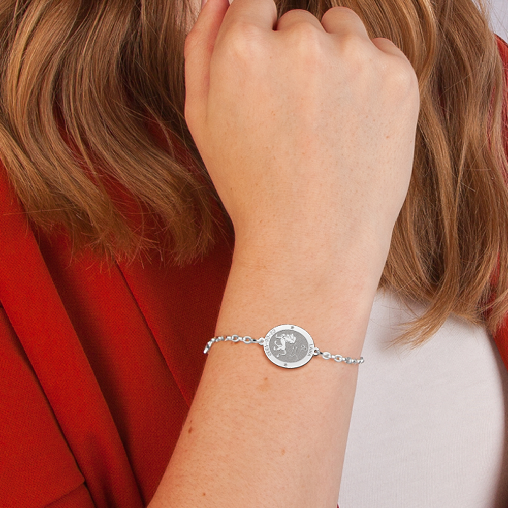 Zilveren Armband met Ovaalvormige Leeuw Sterrenbeeld Naamhanger > Names4ever