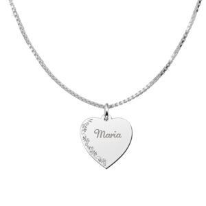 Zilveren graveerplaatje hart met bloemrand – Names4ever