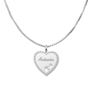 Zilveren graveerplaatje hart19 met rand en handjes – Names4ever