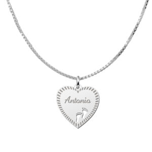 Zilveren graveerplaatje hart19 met rand en voetjes – Names4ever