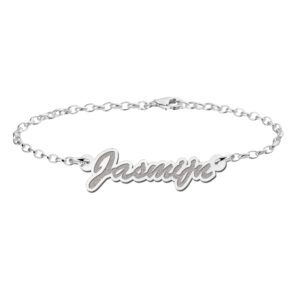 Deze Zilveren Moeder en Dochter Naamarmbandjes Set bestaat uit twee armbanden die zijn gemaakt van 925 sterling zilver, de allerbeste kwaliteit zilver, met een gepolijst oppervlak. Deze armbandjes bestaan uit een slanke schakelband met opengewerkte schakels, met aan de voorkant een plaatje dat qua vorm volledig afhankelijk is van welke naam u wenst te laten graveren op beide armbanden. Aan de achterkant zijn de armbanden voorzien van een handige karabijnsluiting, waarmee u deze armband gemakkelijk om- en afdoet. Deze set is bijzonder leuk als cadeau voor de verjaardag van de moeder of de dochter, voor Moederdag of een andere dag die speciaal is voor zowel de moeder als de dochter, om deze bijzondere band te vieren en te vereeuwigen.