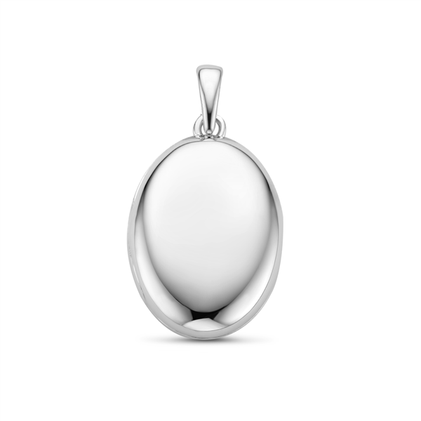 Dit bescheiden Zilveren Ovaal Medaillon is vervaardigd uit 925 Sterling zilver. De voorkant van de hanger is glad en glanzend. Op de achterkant kunnen namen en of data worden gegraveerd met een maximum van 2 x 12 tekens, met als extra optie de gravering van een vingerafdruk. Binnenin het medaillon kan een foto worden geplaatst. Deze hanger heeft een hoogte van 19 mm bij een breedte van 14 mm. Het medaillon is zowel te bestellen zonder als met bijpassende ketting. De bijpassende ketting kan besteld worden in de lengtes 45-50 cm of 38-42 cm.