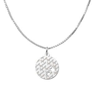 Zilveren plaatje met een naam rond met 2 sterren – Names4ever