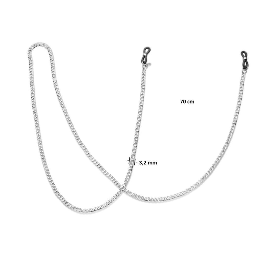 Gerhodineerd 925 zilveren zonnebril ketting. De ketting heeft een lengte van 70cm en een schakelbreedte van 3.2mm.